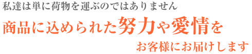 そこで必要となるのは手から手へ、荷主様からエンドユーザー様まで満足のいく輸送サービスの追及こそが我々の最大の使命であります。